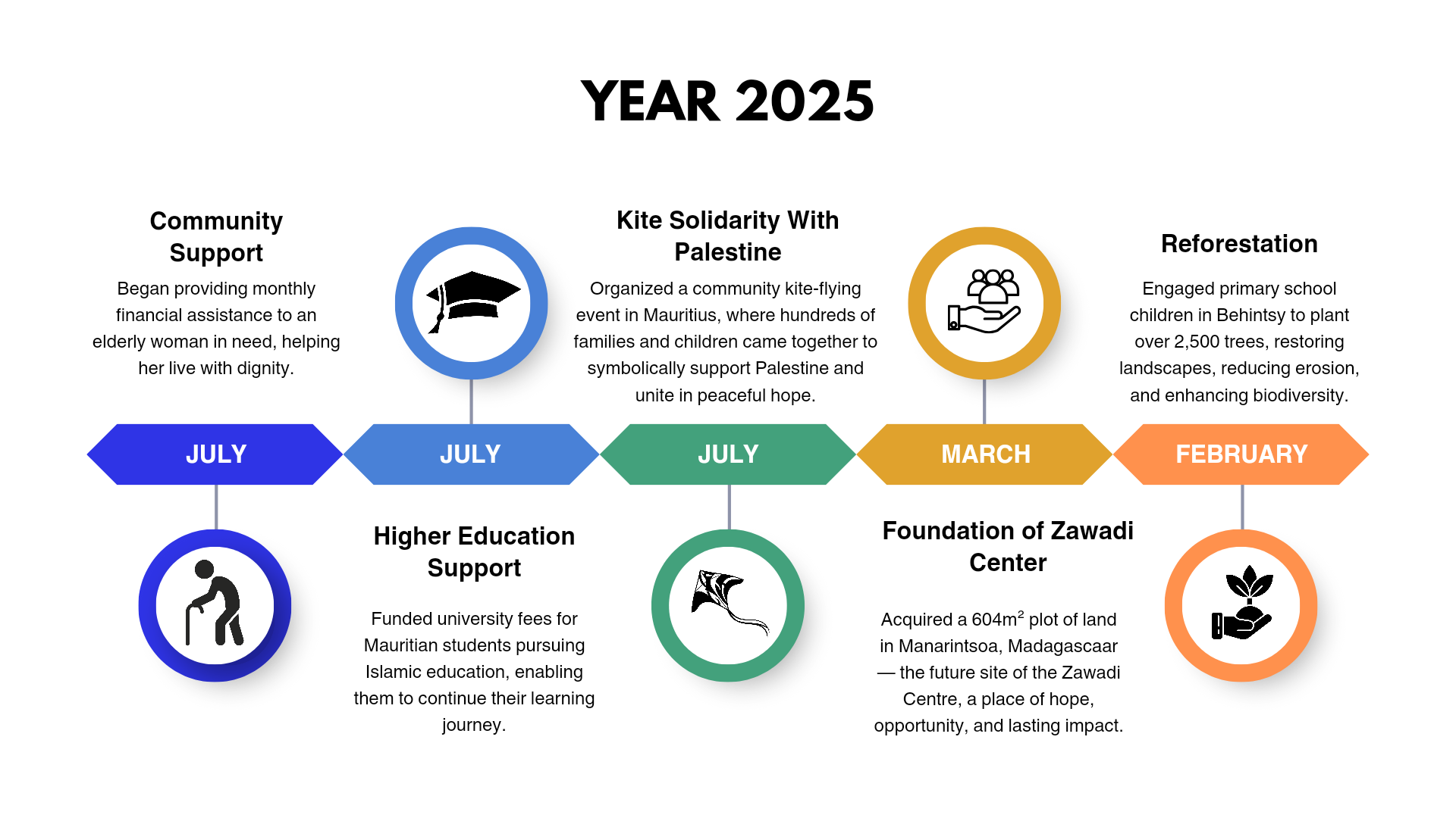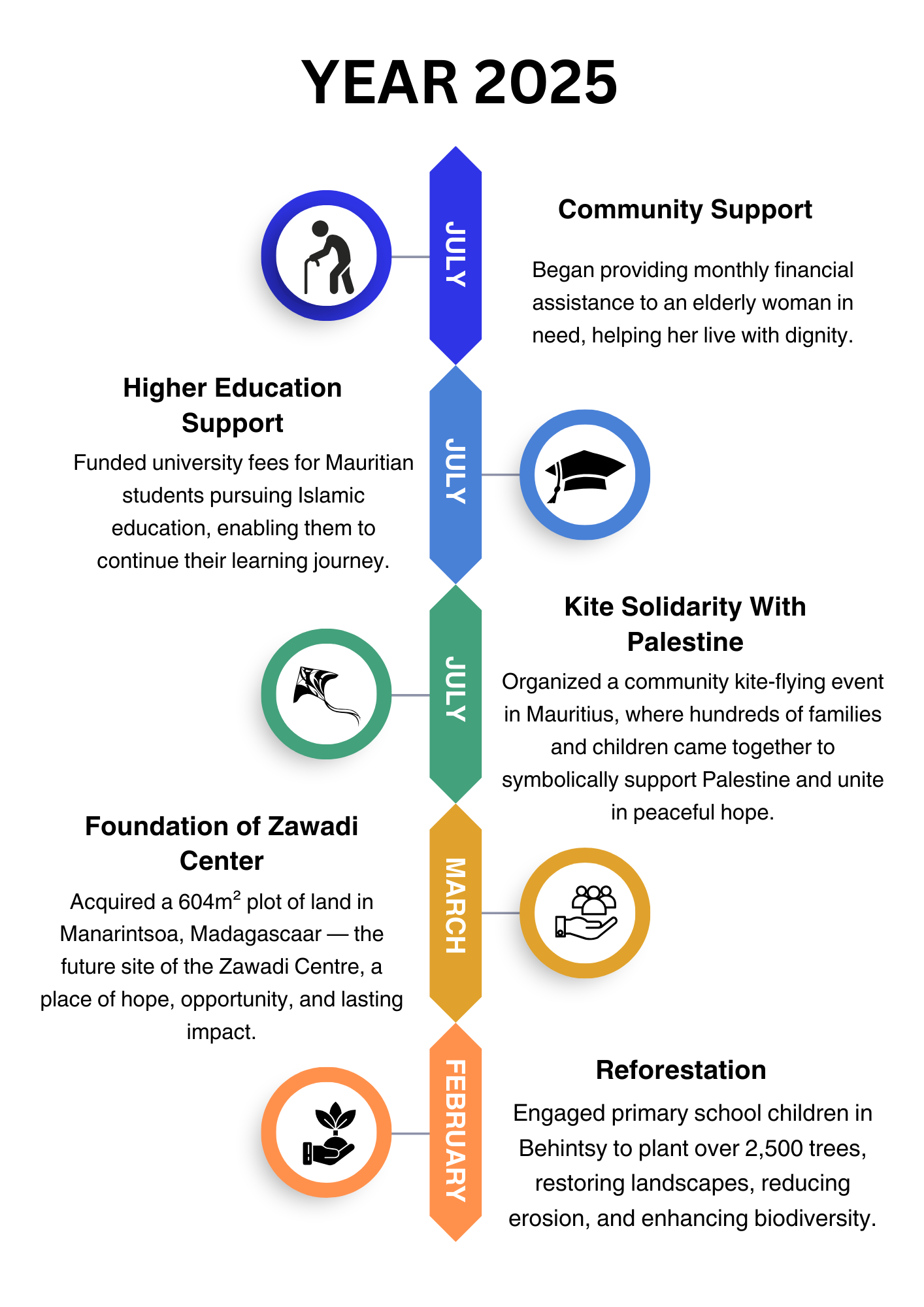 In February 2025, Behintsy’s primary school children took part in tree planting to restore landscapes, reduce soil erosion and enhance biodiversity, embodying the spirit of Sadaqa Jariyah.